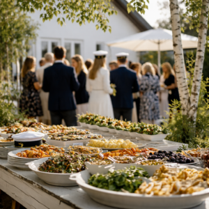 SommarfestNjut av festen vi fixar resten. Gör det enkelt under studentfesten, sommaravslutning eller företagsfesten inför sommaren. Vi erbjuder härliga sommarsmaker färdiga att beställa. Dessutom hyr vi ut allt du behöver från bord, stolar till porslin och dukar. Om du hellre vill boka festen i våra lokaler löser vi det. Välj bland våra smakrika studentbuffér.Sommarmeny 1Pris 295 kr per person inkl. moms Örtkryddat vitlöksbrödTomatsallad med mozzarella och basilikaSkagenröra toppad med citronpärlor2xsalami med fefferoni och oliverTunnskivad mangomarinerad kycklingfiléRamslökscremeFärskpotatissallad med sparris, rödlök och rädisor Sommarmeny 2Pris 340 kr person inkl momsFoccaciaFärskostPlocksallad med melon och fetaostPico de Gallo(tomatsallad med rödlök, koriander, lime och vitlök)Varmrökt lax från Bråvikens rökeri med dilldressingChipotleglacerad ryggbiff med toppad med skottsalladCasarecce med rostade grönsakerBrie med druvor och jordgubbarTrerätters meny med sommarfeeling695 kr per person ex.momsKallbord Kallrökt lax med picklad gurka, rädisa, picklade senapsfrön och pepparrotsmajonnäsKrämig romsill med stenbitsrom, forellrom och en klick Ahrenka-romÄgghalvor med löjrom från BottenvikenBroccolini med friterade marcona mandlar, skånska tomater och jalapeñodipSmör- och örtslungad färskpotatisDanskt rågbröd, surdegsbaguette och fröknäcke som serveras medVästerbottensost och vispat smörVarmbordVälj mellanHelstekt kalvrygg med oxsvanssky och sallad på solmogna tomater som serveras med choronsås och rostad färskpotatisEllerÖrtbakad röding med gräslökshollandaise, potatispuré och grön sparrisAlternativtSmör och citronstekt potatisgnocchi med Västerbottensost, dillpesto, hasselnötteroch ramslöksaioli.Efterrättsbord JordgubbstårtaCitrontartlette med hallon och italiensk marängädelost och brie de meaux med husets marmelad , kex och fröknäckeUtvalt lösgodisFör mer information och bokning: bokning@conventum.se 019-766 45 00
